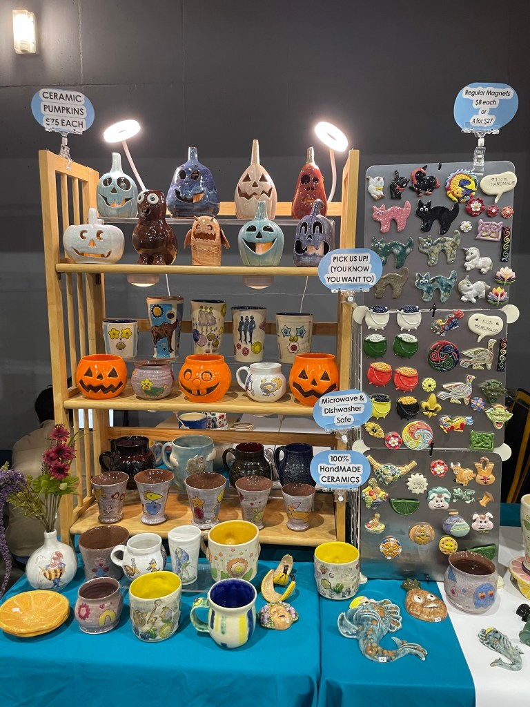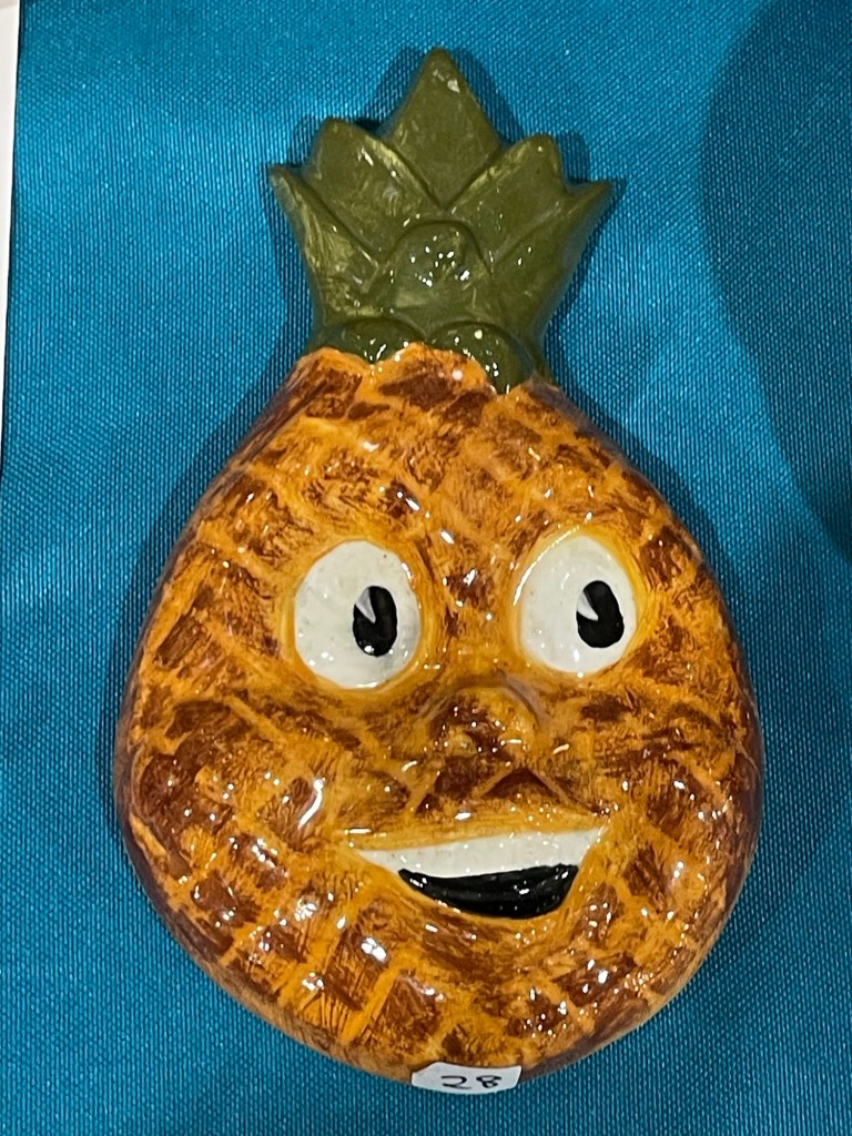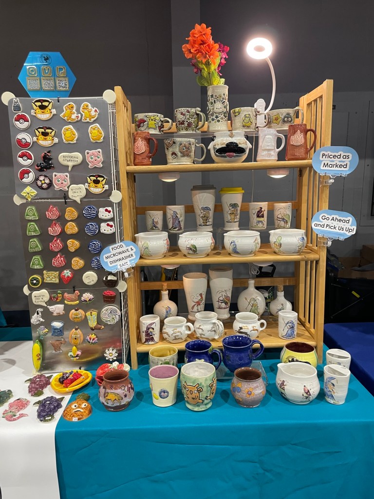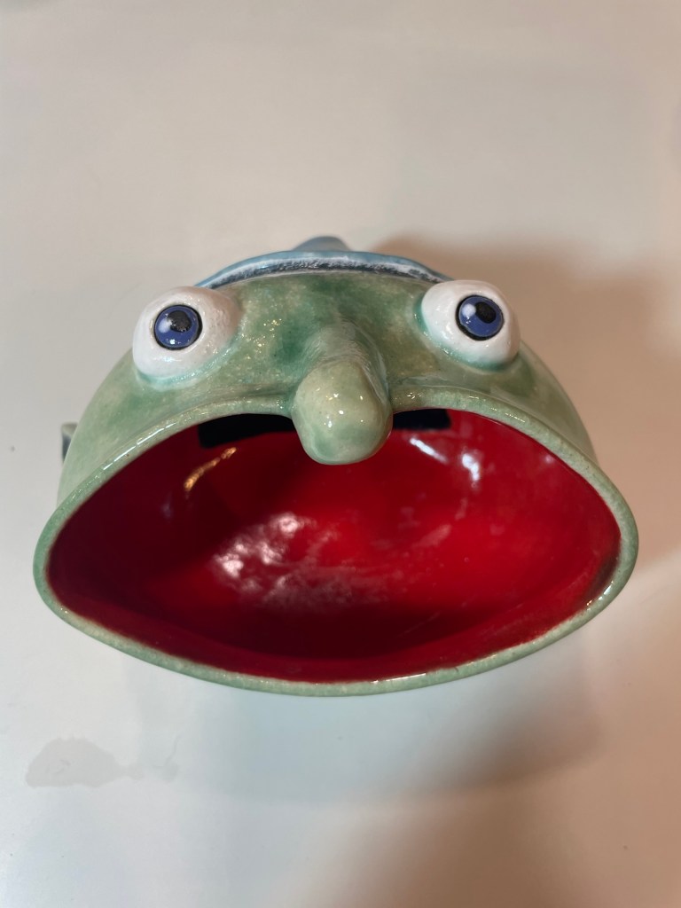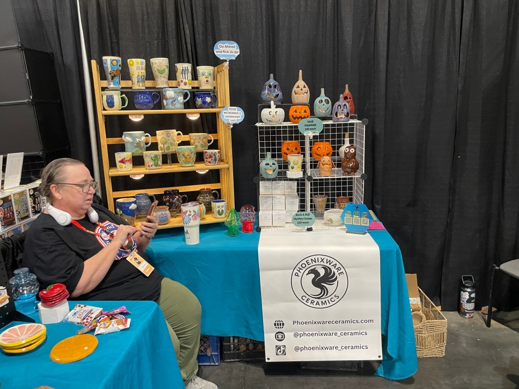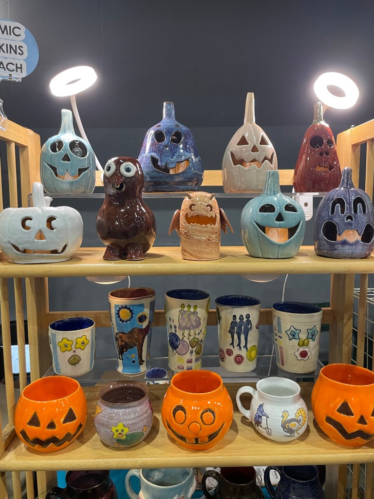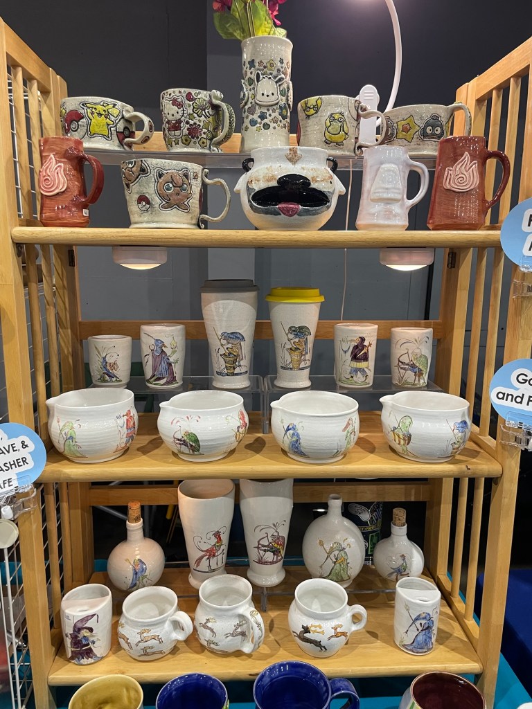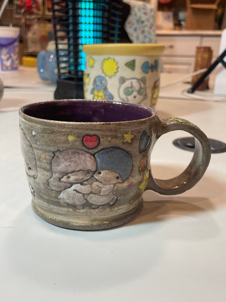 In more recent years, her focus has shifted toward contemporary forms, experimenting with sgraffito, decals, china paints, and underglaze painting. In 2022, she joined Lisa Orr as part of her Clay Cohort, further expanding her practice. Today, Mercy’s work blends whimsical design with sharp political satire, drawing inspiration from both current events and her cultural heritage.